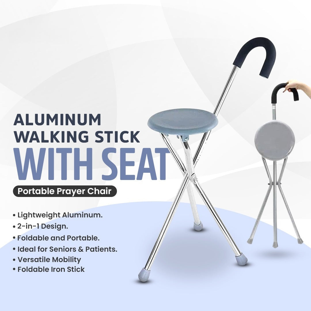 Folding Portable Namaz Chair, Walking Stick, Lightweight Cane Seat Great For Travel Camping Hiking Chair Tripod Cane