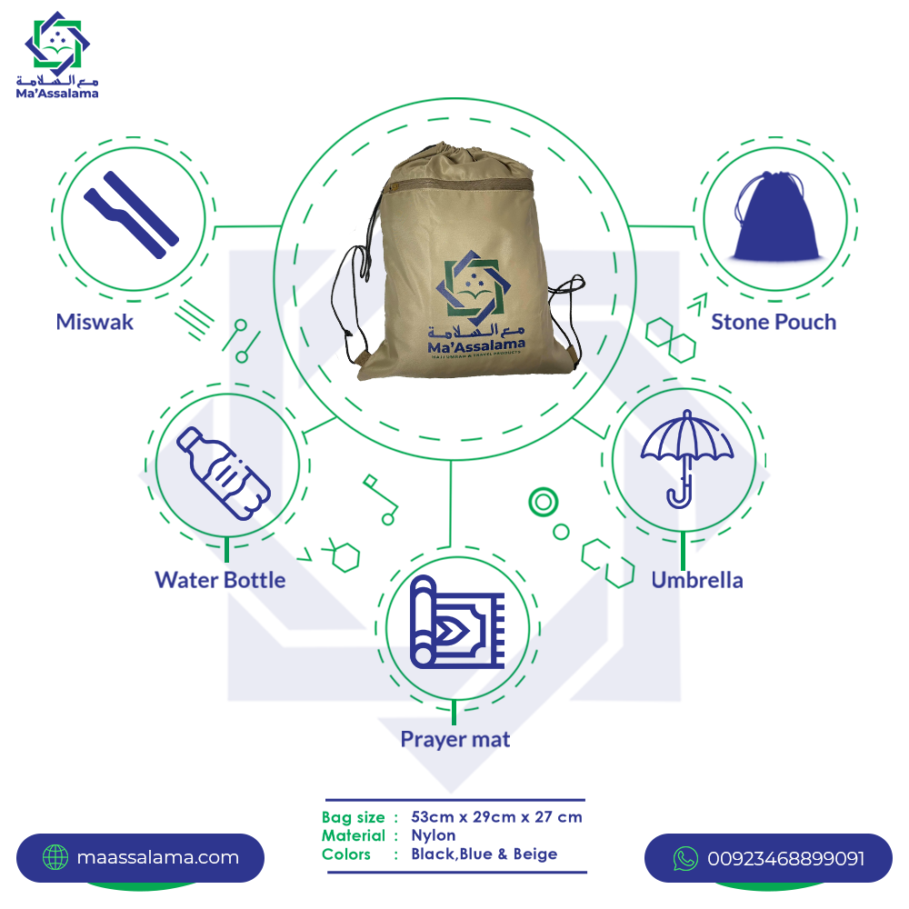 Shoe & Prayer Mate Bag is a light Weight and Water Resistant bag having large capacity for shoes, Prayer Mate, umbrella, water Bottle.